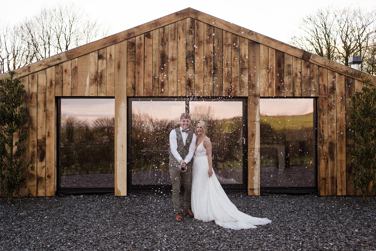 Inclusive Hire includes exclusive use of Trevenna for 1 night, Wedding Catering, Celebration Drinks and Table Wine, plus Accommodation with Farm House Meals for 45 Guests in our cluster of beautifully restored barns and Farm House with stylish interiors, log burners, luxury bedrooms & bathrooms and fantastic views over the Trevenna grounds.